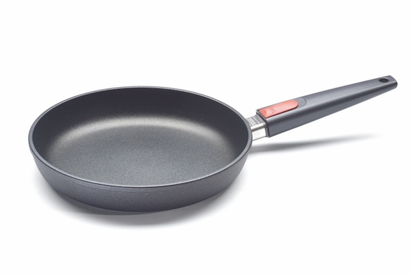 Die Pfannen der Serie Titan von Woll werden in Deutschland aus recyceltem, reinem Aluminium handgegossen. Die Antihaft-Eigenschaften ergeben sich durch die schnitt- und abriebfeste, PFOA-freie Titanium-Hartgrundversiegelung mit Aluminium-Titan-Oxyden. Der ca. 8 mm starke spannungsfreie Pfannenboden und die optional abnehmbaren Stiele für die Verwendung der Pfannen als backofentaugliche Auflaufform sind aus unserer Sicht weitere Pluspunkte dieser Pfannenserie von Woll aus Saarbrücken.