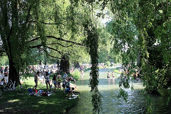 Nächstgelegener Biergarten: Chinesischer Turm. Erfrischungen direkt beim Kiosk Fräulein Grüneis an der stehenden Welle.