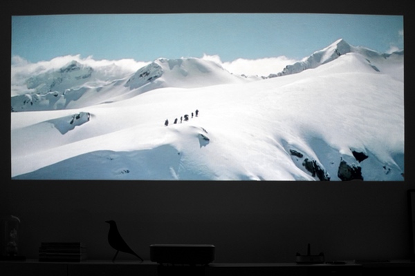 Ein Heimkino-Beamer ohne Installationsaufwand, ohne durch den ganzen Raum verlegte Kabel, ohne Decken- oder Wandhalterung. Einfach auf das Sideboard vor die Wand stellen, Kabel einstecken und den ersten Film anschauen.