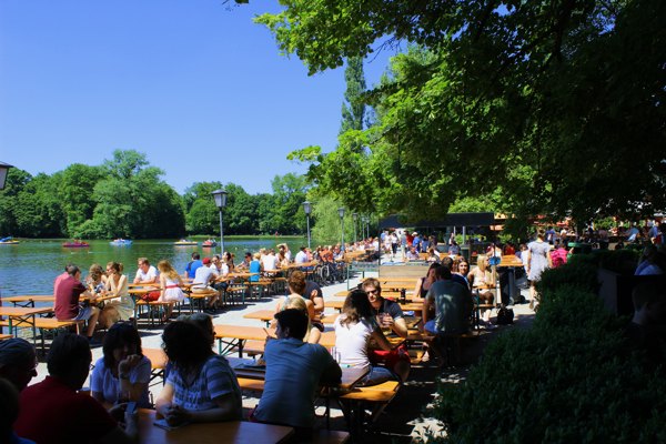 Ein Sommerabend im "Seehaus" im Englischen Garten: Aufgrund seiner Lage hat man im Seehaus bis zur Dämmerung die schönste Abendsonne Münchens und sitzt dabei mit Brotzeit und einer Maß Bier gemütlich direkt am Ufer des 1803 künstlich angelegten Kleinhesseloher Sees auf einem der ca. 2500 Plätze. Hinkommen mit der U-Bahn bis Münchner Freiheit, aber schöner ist es mit dem Radl durch den Englischen Garten.
