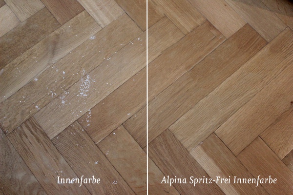 Bei der Innenfarbe von Alpina haftet die Farbe noch besser an der Rolle und sorgt dadurch bei sachgemäßer Anwendung für nahezu spritz- und tropffreies Streichen der Wände und natürlich Decken. Das funktioniert bei allen trockenen, festen und tragfähigen Untergründen wie Raufaser- und Strukturtapeten, Mauerwerk, Verputz, Beton oder Gipskarton- und Deckenplatten.